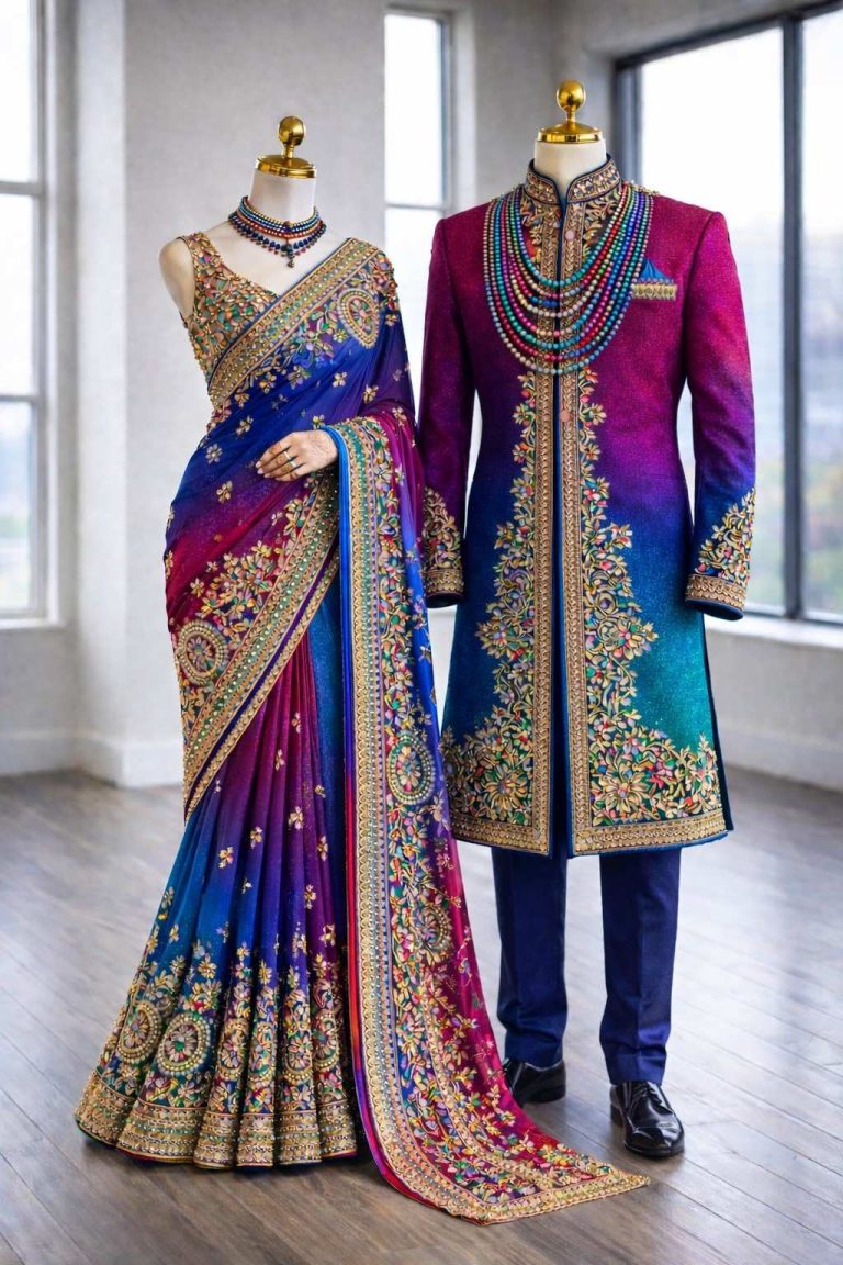 Indian sarees have always represented elegance, heritage, and craftsmanship. Among them, royal multicolor embroidered sarees with heavy zari work stand …
