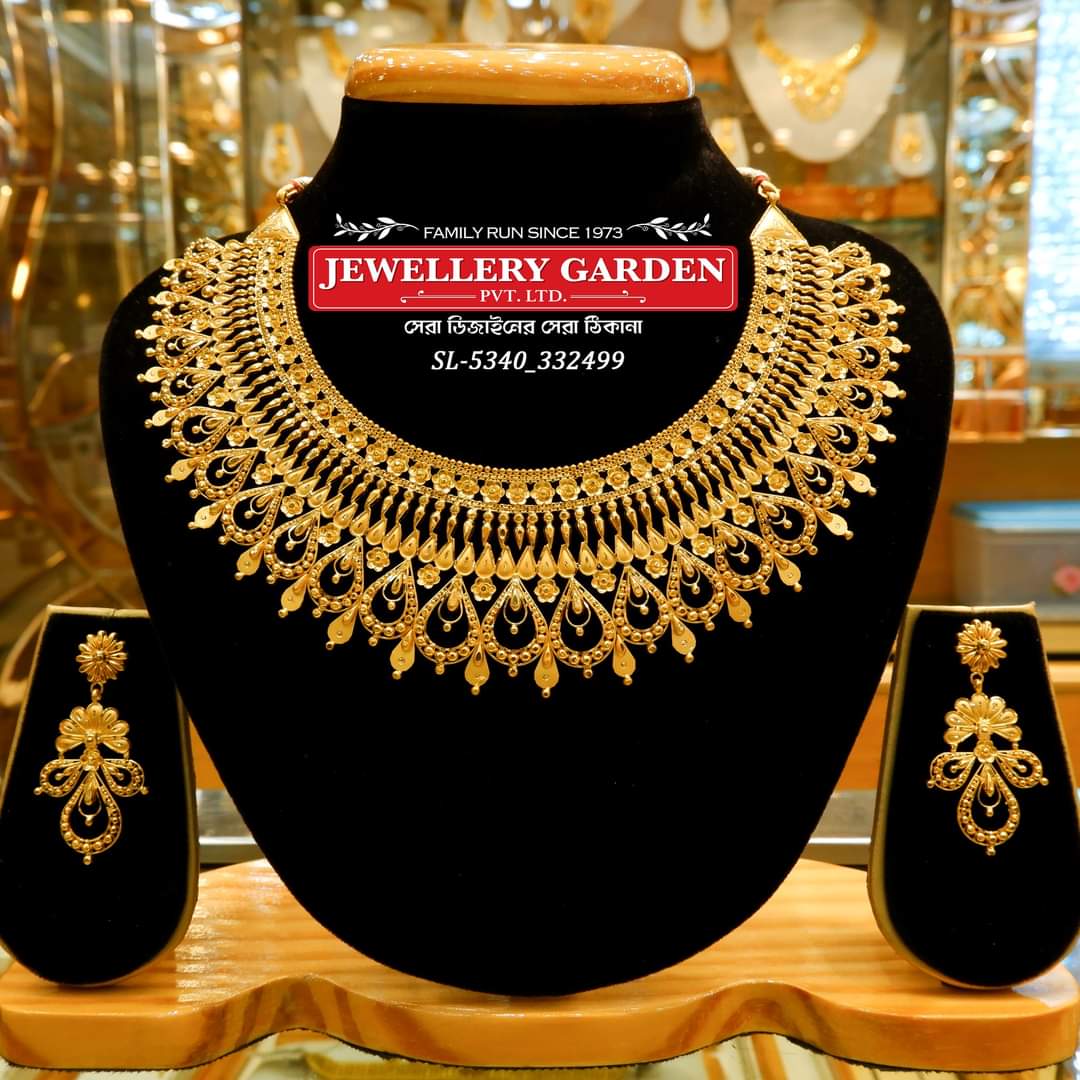 2. Floral bridal gold necklace set in 60 grams