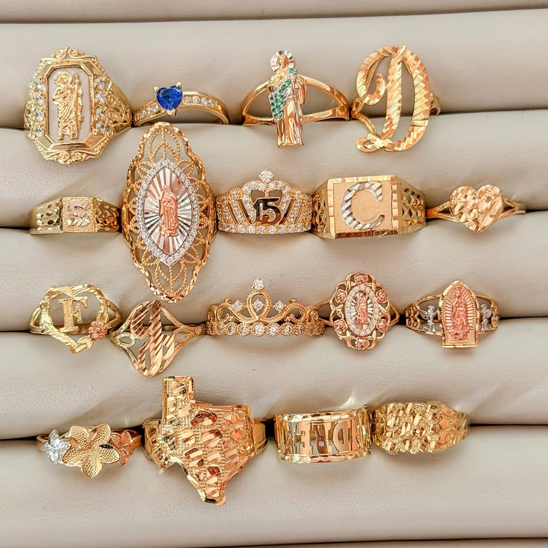 Gold rings have always held a special place in fine jewellery collections. They are not just ornaments, but powerful symbols of identity, love, faith, and personal style. The jewellery displayed in this photo showcases a stunning variety of gold ring designs, blending traditional craftsmanship with modern creativity. From religious motifs and initials to crown styles and bold statement rings, this collection reflects how gold rings continue to evolve while preserving their timeless charm.