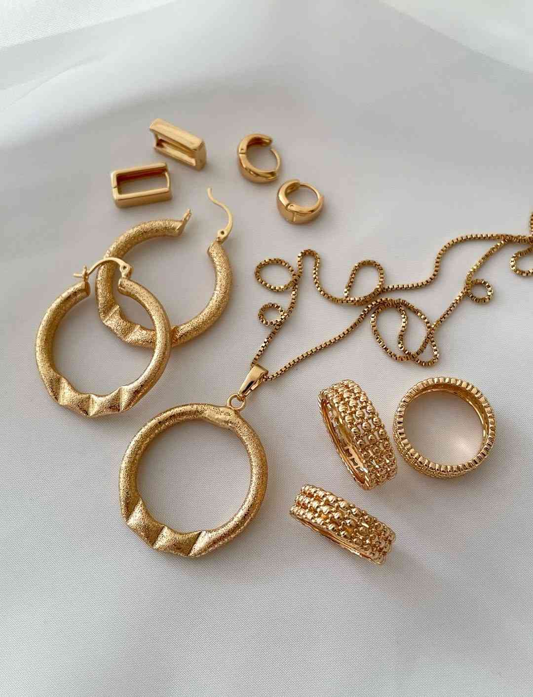Minimalist gold jewelry with geometric and circular designs is one of the top jewelry trends this year.